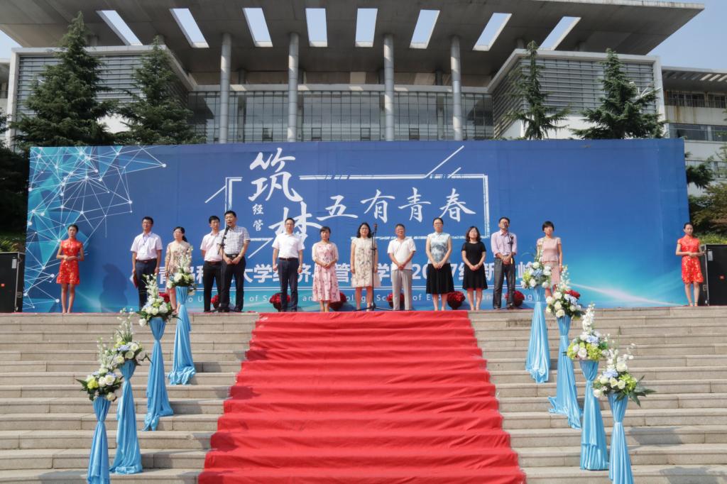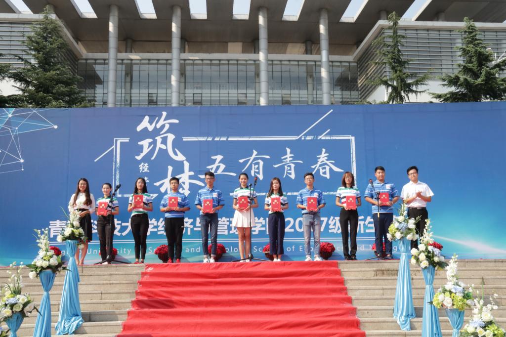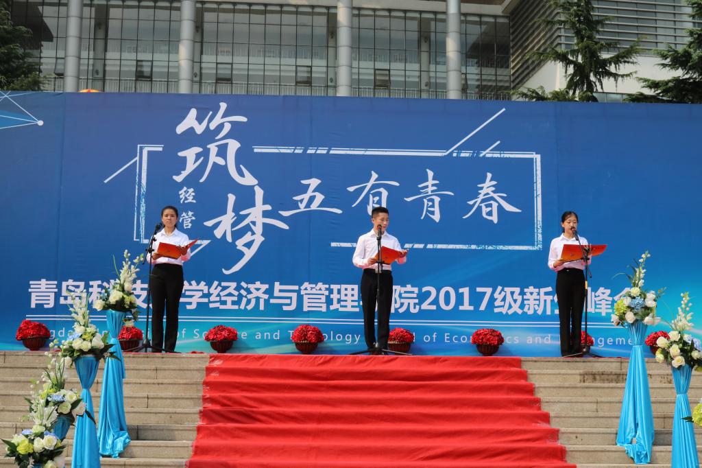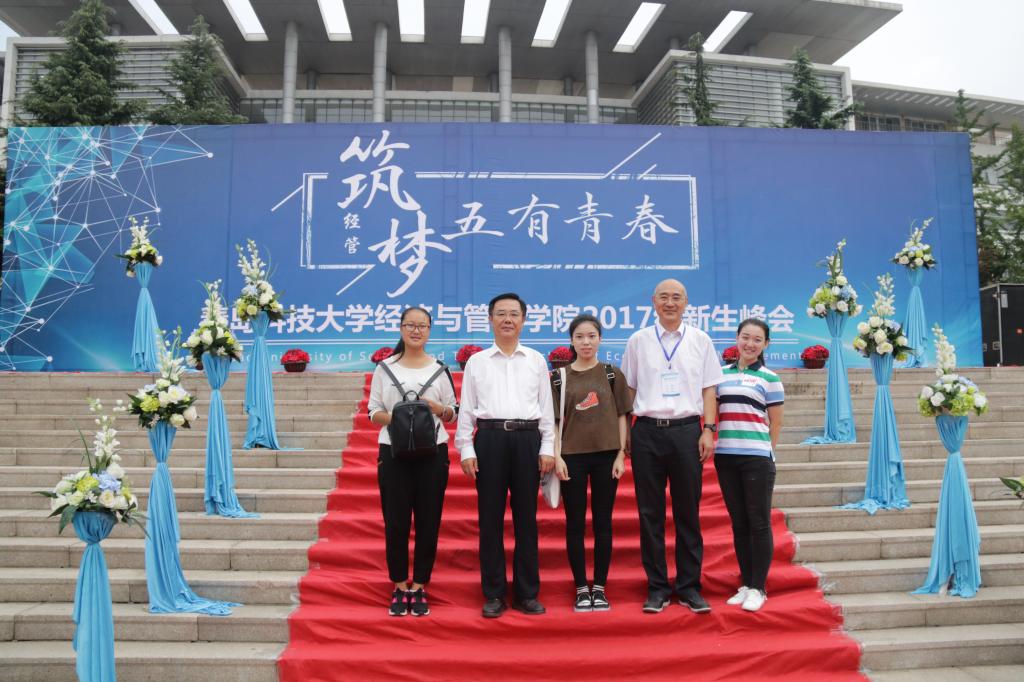 再现经济峰会,突出经管特色――本次迎新模拟大型世界经济峰会,新生在现场作为不同专业的代表团进入峰会活动现场。现场布置将世界级经济峰会整体模式与迎新相结合,场地中央布置巨大“五有青春,筑梦经管”主题喷绘,同时还设置了新闻发布区、采访区和拍照留念区等功能区域。从第一天就为学生营造专业氛围。