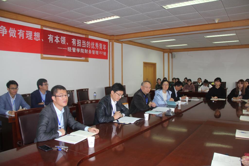 刘兴云认真听取大家的发言,并不时与大家交流看法,对财务管理151班团结奋进、积极上进的班级风貌表示赞赏,并期望班级同学在以后的发展中取得更大成绩。他对同学们学习生活实践中遇到困惑提了合理建议。