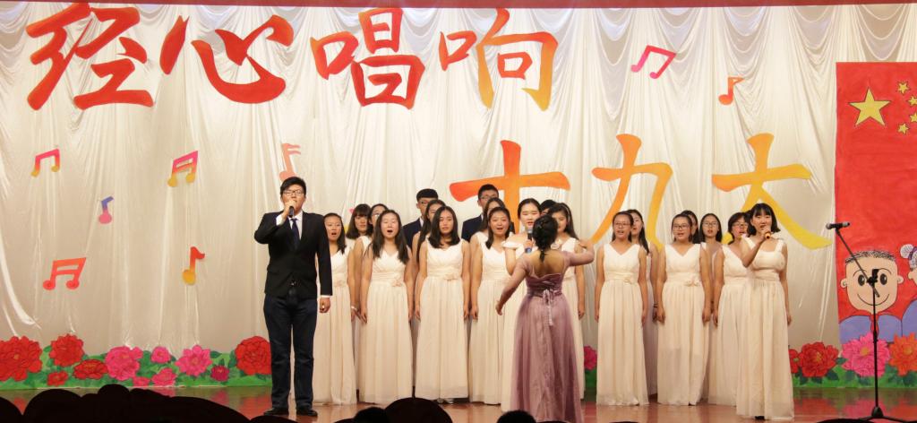 在第二报告厅举行了“‘经’心唱响十九大”合唱比赛决赛。校团委副书记杨小明、华人色情