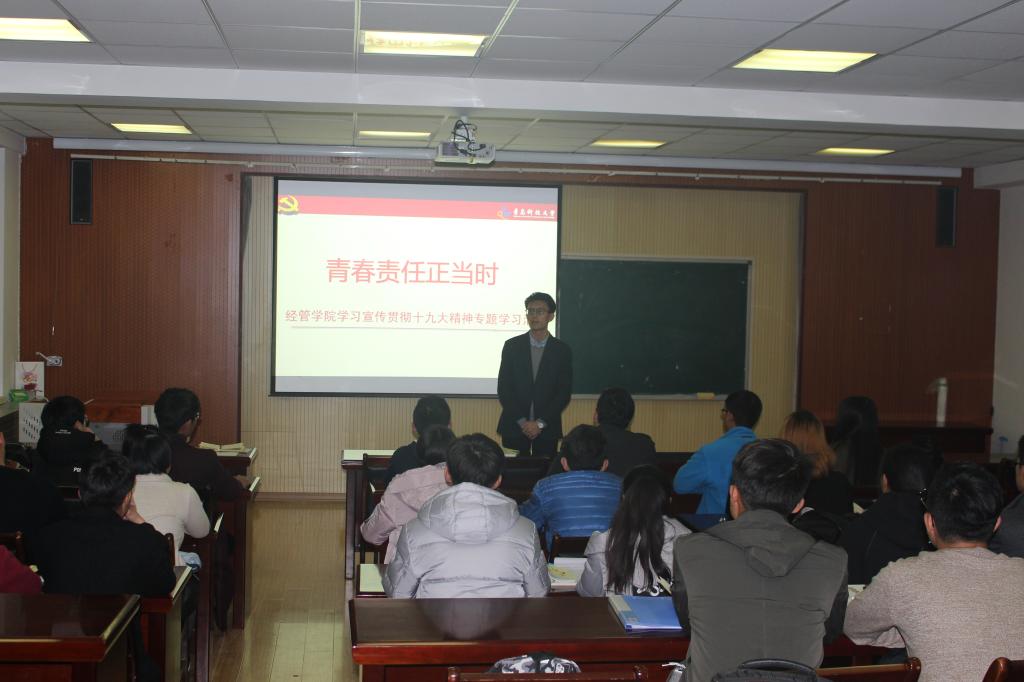 在419会议室召开2017级学生干部培训会暨养成教育专题学习会。会议以“学习宣传贯彻党的十九大精神,青春责任正当时”为主题展开,以提升学生干部责任意识和纪律观念,增强学生干部的工作能力。2017级辅导员张显全、王景雯及主要学生干部参加了此次会议。