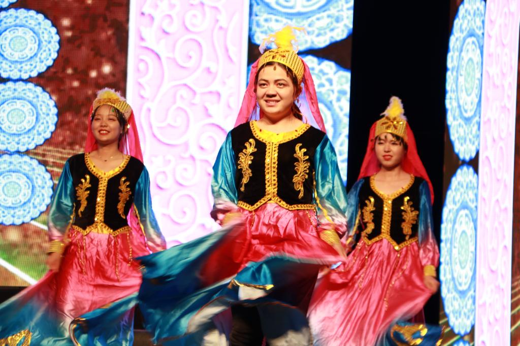 精心推出的民族舞蹈《盛世欢腾》带领观众走进美丽富饶、幅员辽阔的大美新疆,学生们曼妙的舞姿、跳跃的鼓点将民族元素、中国烙印展现在满含异域风情的舞步里,舞出了经管学子团结向上的精神风貌,舞出了五十六个民族手足相亲,守望相助,舞出了对祖国母亲繁荣昌盛的美好祝愿,呈现出一派中华民族大团结、繁荣、朝气蓬勃的景象,场下欢呼掌声迭起,掀起晚会的小高潮。