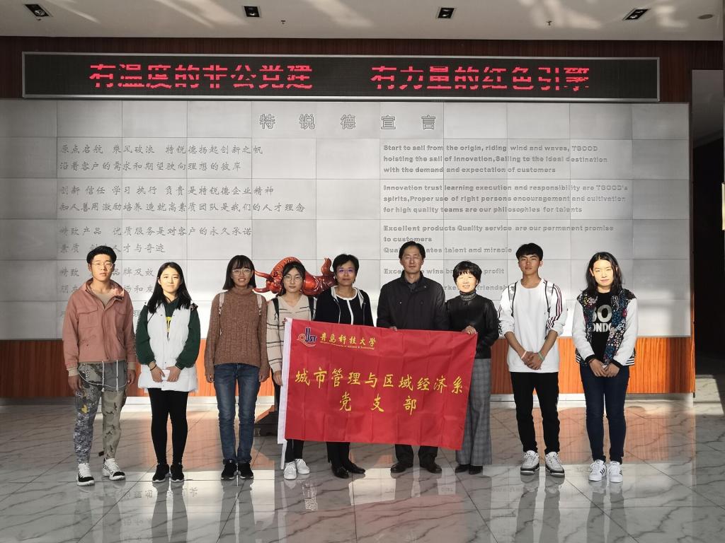 城市管理与区域经济系党支部及城市管理专业学生党员,在总支书记李德成的带领下,来到青岛特锐德“生态党建”基地进行特色党日活动。