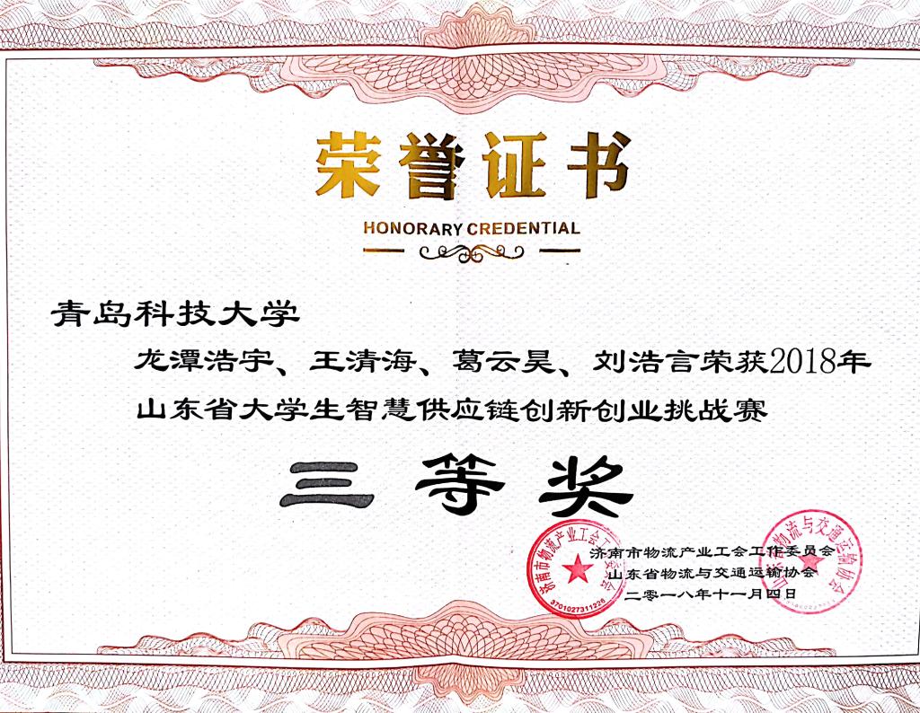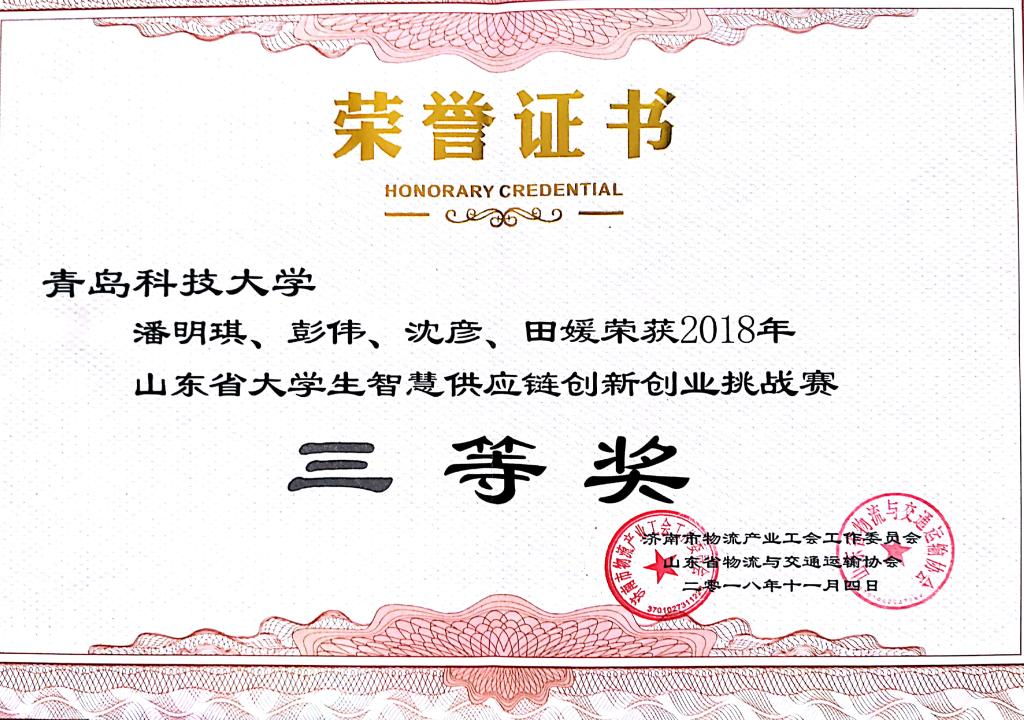 物流管理专业16级学生组成的两支参赛队伍分别荣获三等奖,展现了青科大学子的风采。