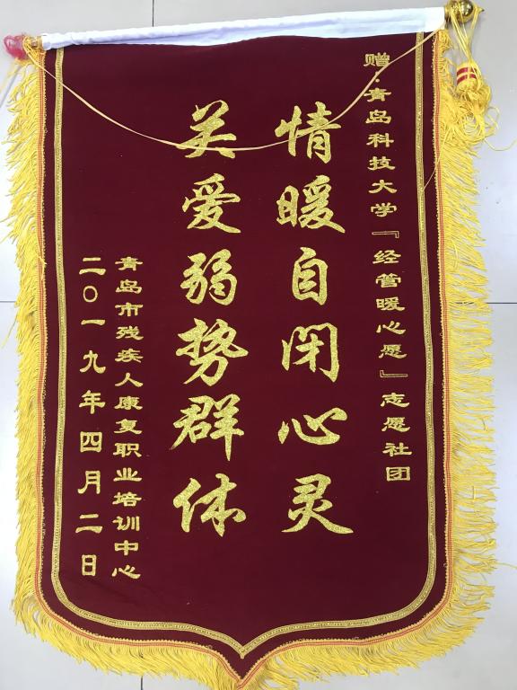 “暖心愿”志愿服务团队为代表的各志愿团体“情暖自闭心灵关爱弱势群体”的荣誉锦旗,表彰各团队长期以来的无私奉献。青岛晚报、财经日报、青岛早报、青岛电视台等媒体对活动进行跟踪报道。