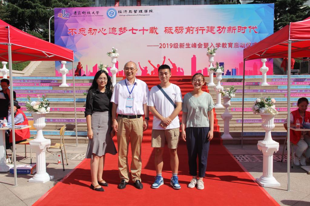 又逢一年开学季,学院在传承经济峰会特色的基础上着力打造经管品牌,共庆中华人民共和国成立七十周年。新生峰会现场设置新闻发布区、采访区、交流区以融合和促进为指引,新生既分专业进入会场,又作为专业代表互动交流,打造经管品牌。场地中央置巨大“不忘初心追梦七十载 砥砺前行建功新时代”主题喷绘,共庆中华人民共和国成立七十周年。