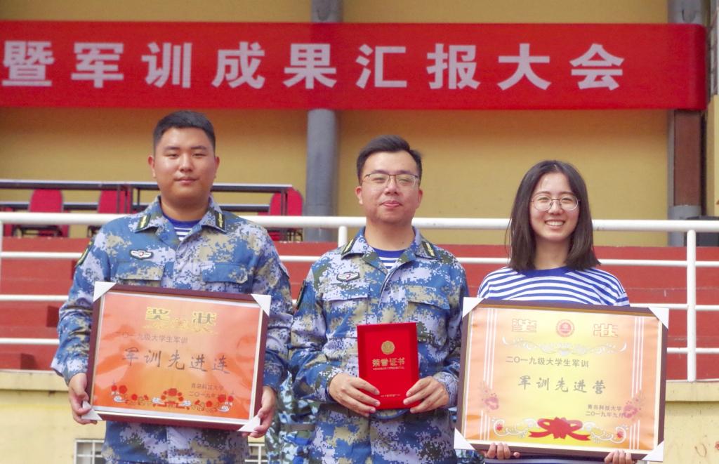 喜获佳绩——学院四营获军训先进营 、四营一连获军训先进连荣誉称号,2019级辅导员孙一君获优秀政治教导员荣誉称号,国际经济与贸易专业新生周成获华人色情