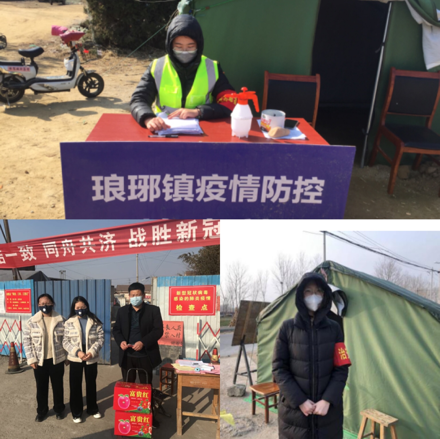 “暖心愿”青年志愿者团队的成员,在校积极参与志愿服务活动,在疫情防控期间,他们再次充分发扬志愿者精神——为解决部分执勤人员与行动不便老人的吃饭问题,加入乡政府组织的送餐队伍,化身“红色代跑员”;日常进行村内安全巡逻和消毒消杀,化身村民们的“守护天使”;手持横幅、喇叭、党旗巡逻在古城村的每条公路和支路,化身“疫情防控宣传员”。其中,每天工作时间长达12个小时的庄跃瑶,因长期戴口罩,脸上已有明显的压痕,她却笑着说道:“哪有什么岁月静好,不过是有人为你负重前行。想着奋斗在一线的医护人员每天与病魔搏斗,我这点努力不算啥。”