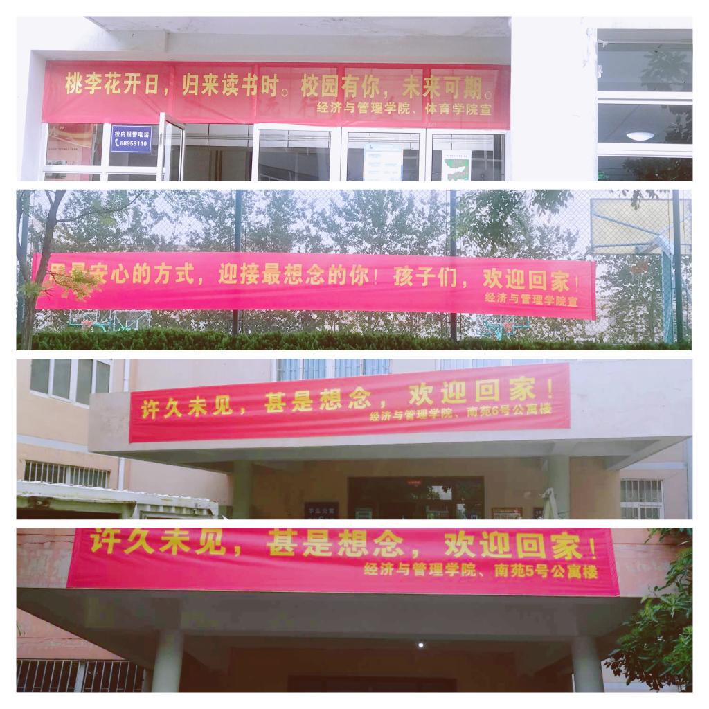 学院积极联络校友企业,筹备防疫物资,为每位返校学生准备了口罩、消毒液等物品,确保返校无忧;5月26日,以“孩子们,欢迎回家”为主题,通过辅导员录制暖心视频、张贴海报、悬挂横幅、定制臂贴、发布《致全体经管学子的一封信》等形式,营造温暖返校氛围,用细致入微的服务欢迎学子们复学归来;结合前期返校统计,辅导员走进宿舍帮助学生提前开窗换气,力求每一位学生的安全住宿万无一失;5月27日下午,学院党政领导、辅导员,一同迎接第一批返校毕业生,陪同学生走进校门、做好核酸检测,送入宿舍,了解学生生活需求,叮嘱注意事项。
