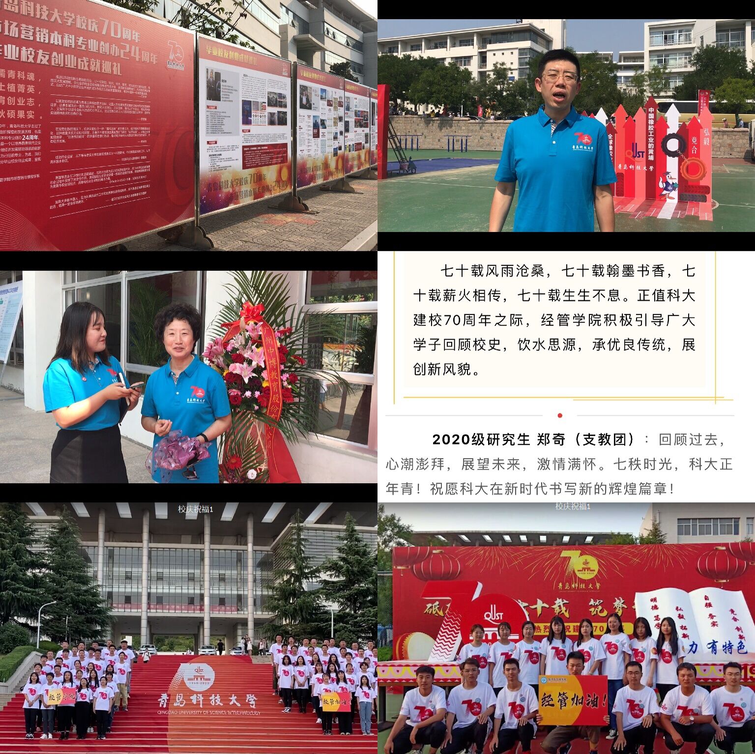 层层压紧压实责任,扎实务实配合学校工作,致力于把70周年校庆办成一场“隆重热烈、简朴务实、内涵丰富、助力发展”的盛会。开展“校园专访--我与科大的故事”“剪影科大”“我为校庆送祝福”等校庆专题系列活动,用“一采一影一视频”的方式展现了经管学子知校、爱校、荣校的大爱情怀。盛邀海内外校友、广大师生相聚云端追忆历史,通过“云祝福”“云回忆”“云展望”,聚力同心,共襄盛典。“挂横幅”“置花篮”“发礼物”,广泛动员,全院师生通力合作,积极引导广大学子饮水思源,承优良传统,展创新风貌,营造热烈浓厚的庆典氛围。