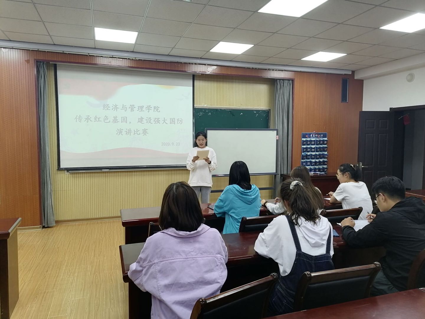 于经管楼419室顺利举办“传承红色基因,建设强大国防”主题演讲比赛。