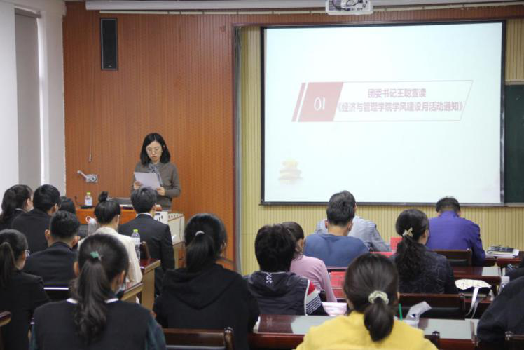 于经管楼419室举行“不忘初心,砥砺逐梦”学风建设月启动仪式暨山东省国家奖学金、省政府奖学金答辩会。党委书记李德成、院长李勋来、副院长宫攀、各系主任、全体专兼职辅导员及部分学生代表参加会议。
