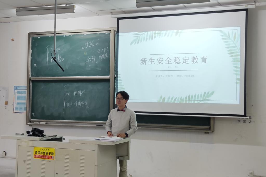 于弘毅楼E102室、E202室举行新生安全教育大会。会议由2020级辅导员付凯、王世杰主持,华人色情
