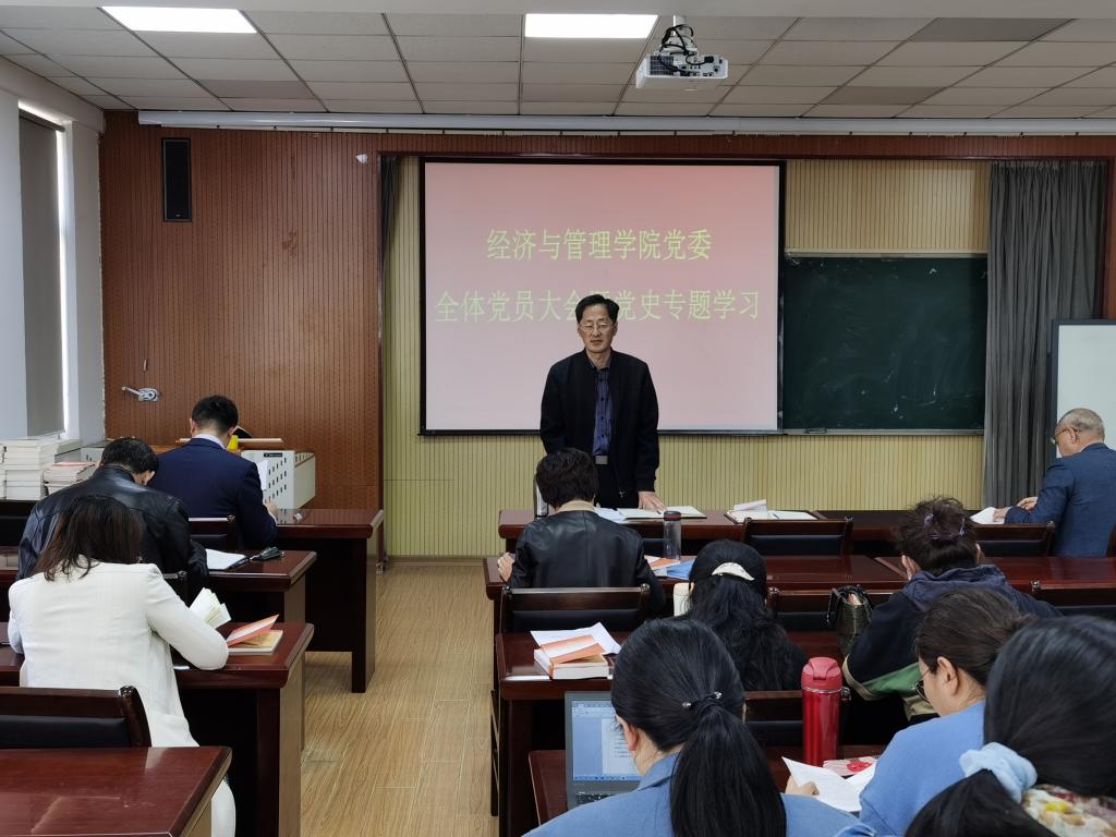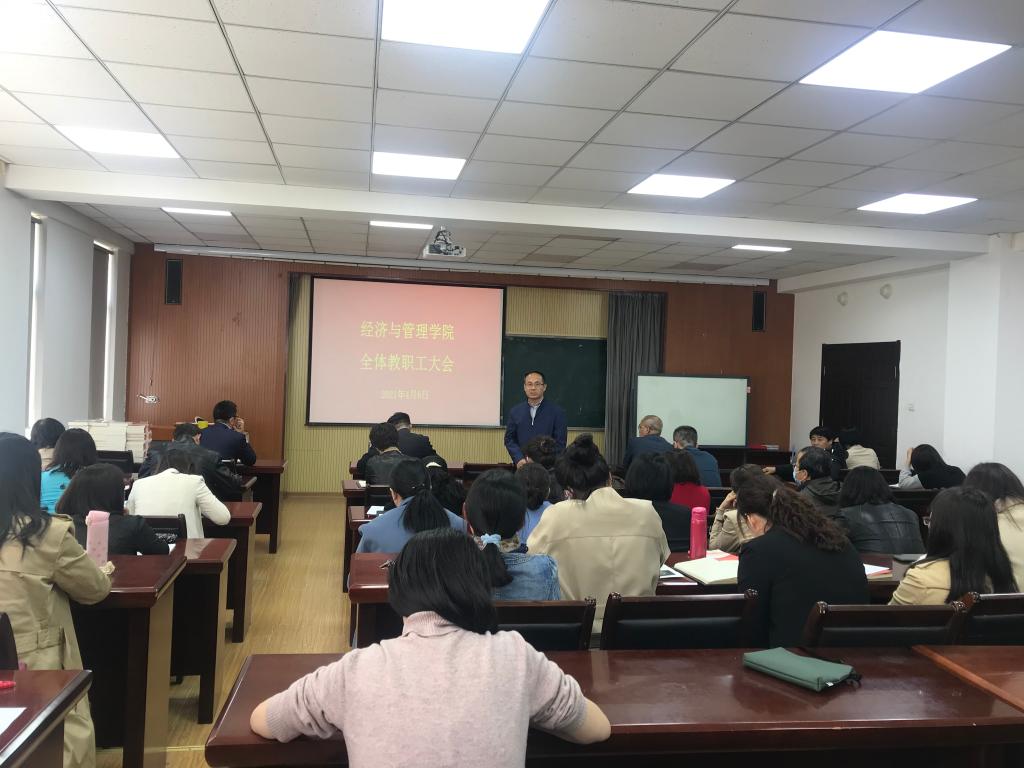 全体教职工大会暨第二次教职工理论学习会于经管楼419会议室举行,学院全体教职工参加会议,会议由学院党委书记李德成主持。