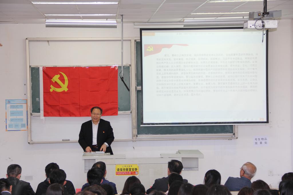 开班仪式上学院党委副书记、院长李勋来带领全体党员重温入党誓词;学院正处级组织员王成果为各党支部发放党史学习教育指定资料。