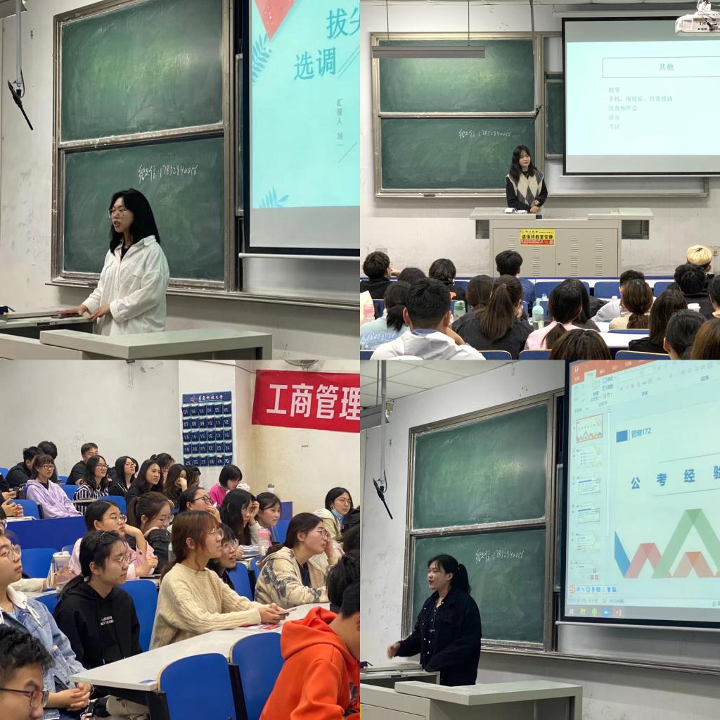 2021年5月15日,工商管理专业于弘毅楼E区101教室举办考研就业经验分享会。此次分享会邀请了2021年考研、考公成功的七位学长学姐为参加分享会的18、19和20级同学进行面对面的经验分享与交流。会议由工商管理系副主任孙小强老师主持。