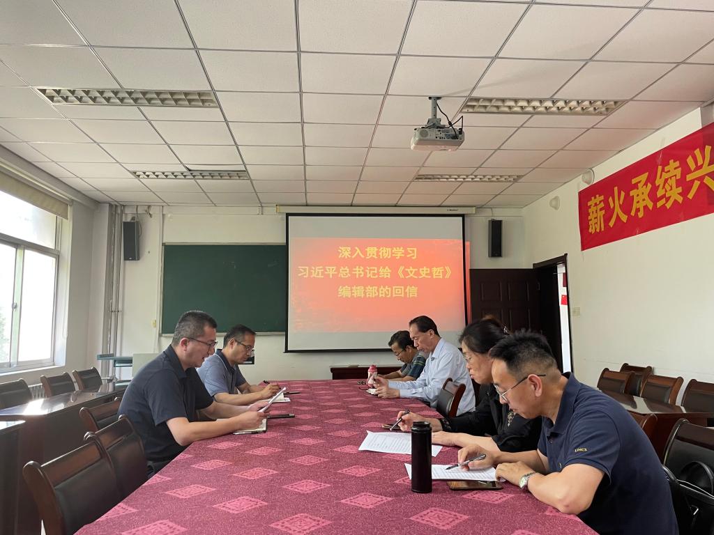 组织召开《深入贯彻学习习近平总书记给< 文史哲>编辑部的回信》专题会议,全面深刻理解习近平总书记对于弘扬中华文明、繁荣学术研究方面的重要指示精神。副院长吕承超主持会议,院长李勋来及教师代表参与学习。
