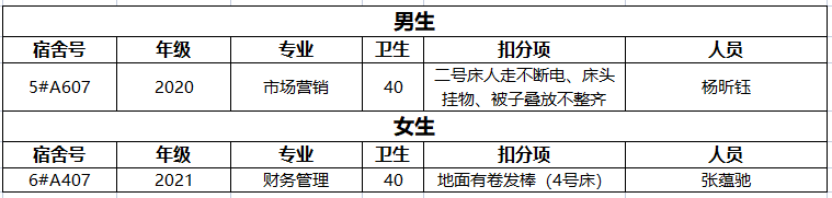 卫生检查结果及扣分细则请见附件,请各年级对照问题监督好不合格宿舍的整改。