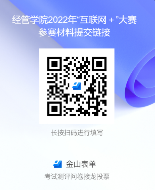 2022年“互联网+”大赛参赛材料提交链接//f.wps.cn/w/1xzxiX4t/」或扫描下方二维码完成参赛材料提交。