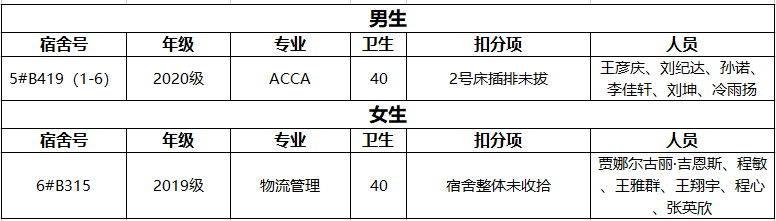 不合格宿舍如下:
