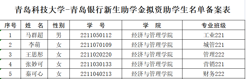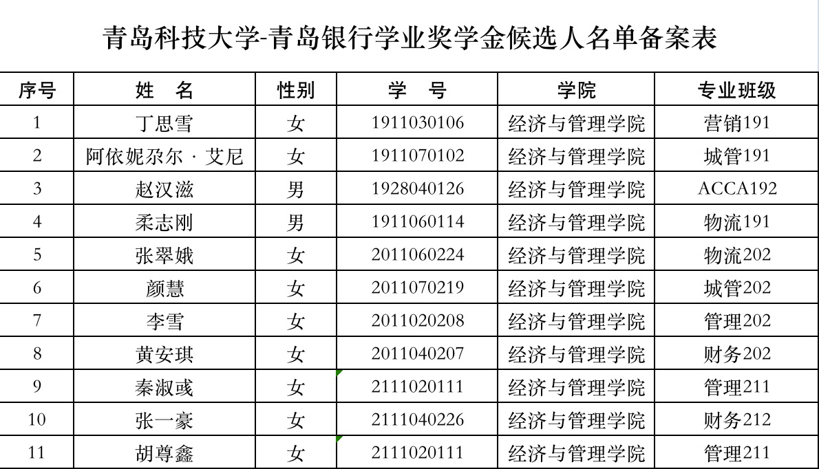 根据学校《关于评审2022年度青岛银行奖助学金的通知》的要求,经个人申请、材料审核,结合前期奖助学金获得情况,现对青岛银行奖助学金获得者予以公示,公示期3个工作日,公示时间2023年4月4日-2023年4月7日。