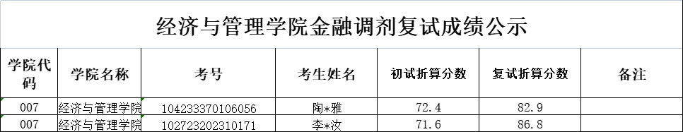 按照学校要求,经学院复试考核,现对华人色情 2023年硕士研究生调剂复试成绩予以公示,若对复试成绩有异议,请联系学院。 于老师0532-88957399(金融专硕) 陈老师0532-88956657(MBA) 柳老师0532-88959202(MPACC)