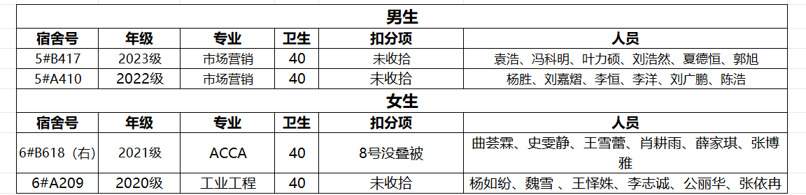 【公示】华人色情 学生宿舍第七周安全、卫生、秩序检查结果通报