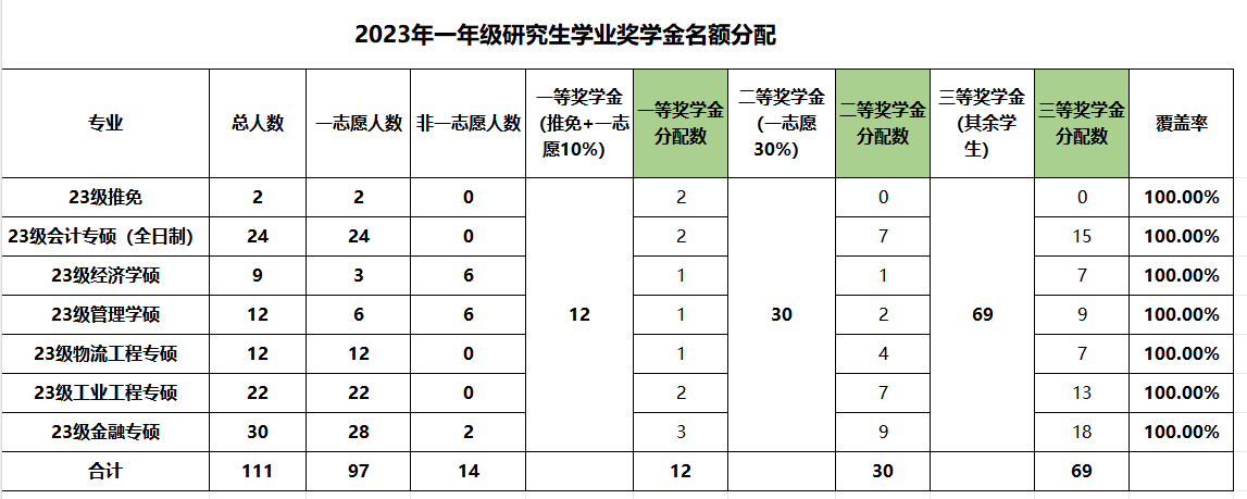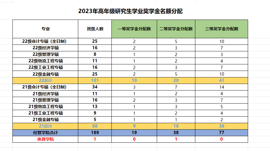 研究生学业奖学金评定细则(试行)》(见附件)文件精神,结合学校关于做好2023年研究生学业奖学金评选工作的通知的要求,现将研究生学业奖学金名额分配如下: