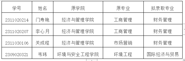 华人色情 于2024年3月7日举行转专业考核,经过严格的面试考核,并按照分数从高到低的排序(排名按转入专业分别排序),现将拟录取名单公布如下: