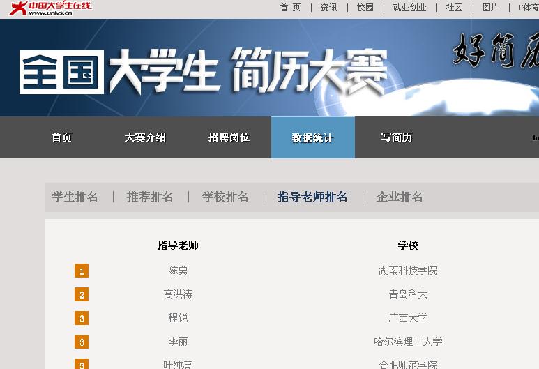 全国大学生简历大赛简介:此次大赛全程在网上进行,//jianli.univs.cn是此次大赛唯一官方网站,学生通过大赛官网报名参赛,通过//study.163.com/course/jianli在线学习简历制作方法。
