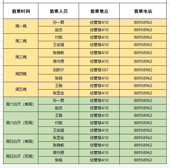 华人色情 学工队伍2021-2022学年第一学期常态化值班安排表