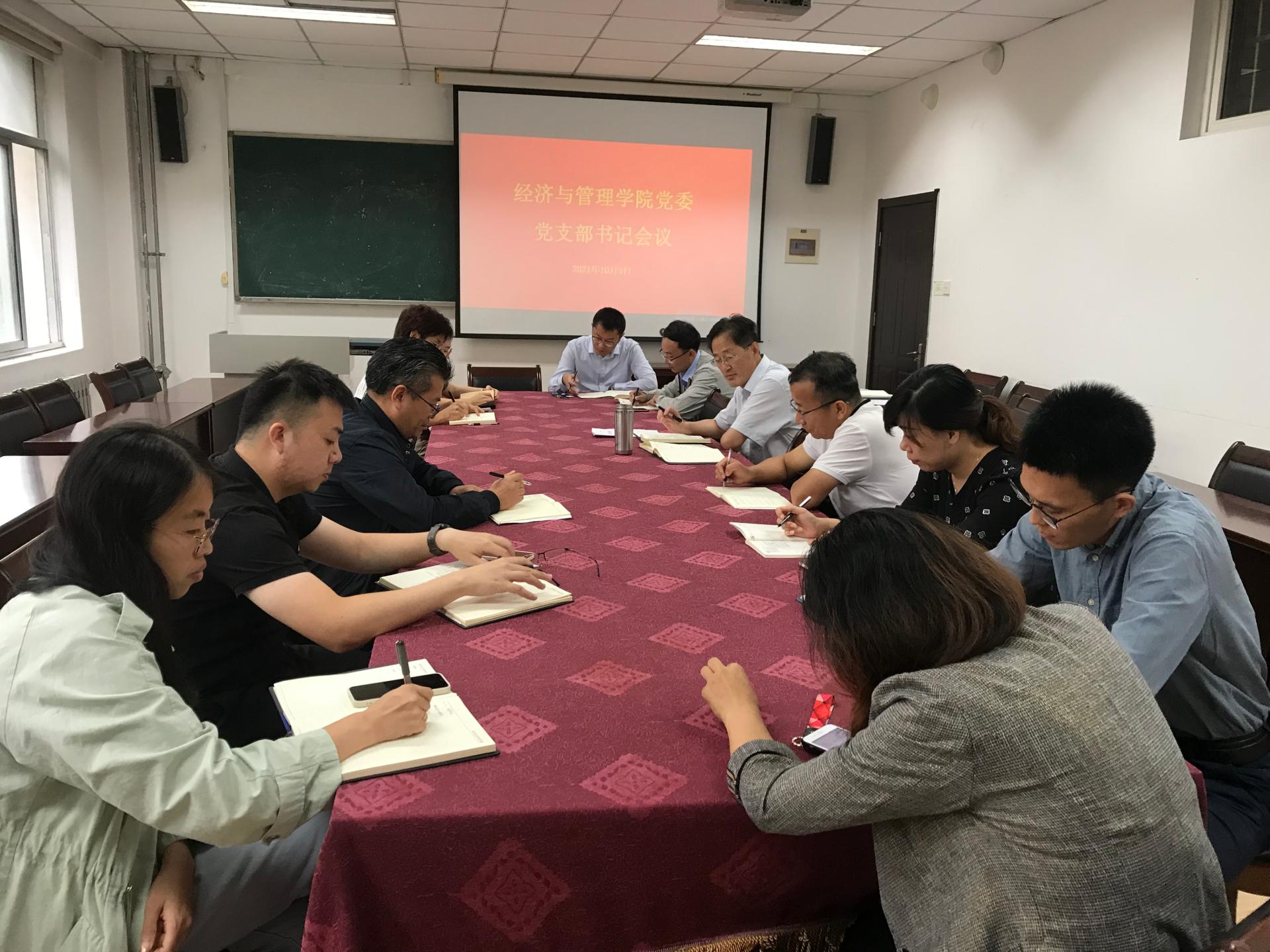党委于经管楼415会议室召开党支部书记会议,全体党支部书记参与会议,会议由党委书记李德成主持。