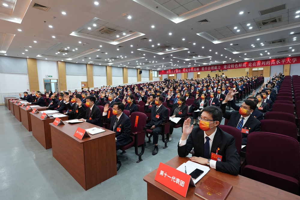 第十一次党员代表大会预备会议在崂山校区第二报告厅举行,校党政领导班子成员李兴伟、陈克正、李勇、沈文青、丁林、李志波、李少远、刘明永、罗细亮、张洪坤参加会议。第十一次党代会全体代表参加会议。