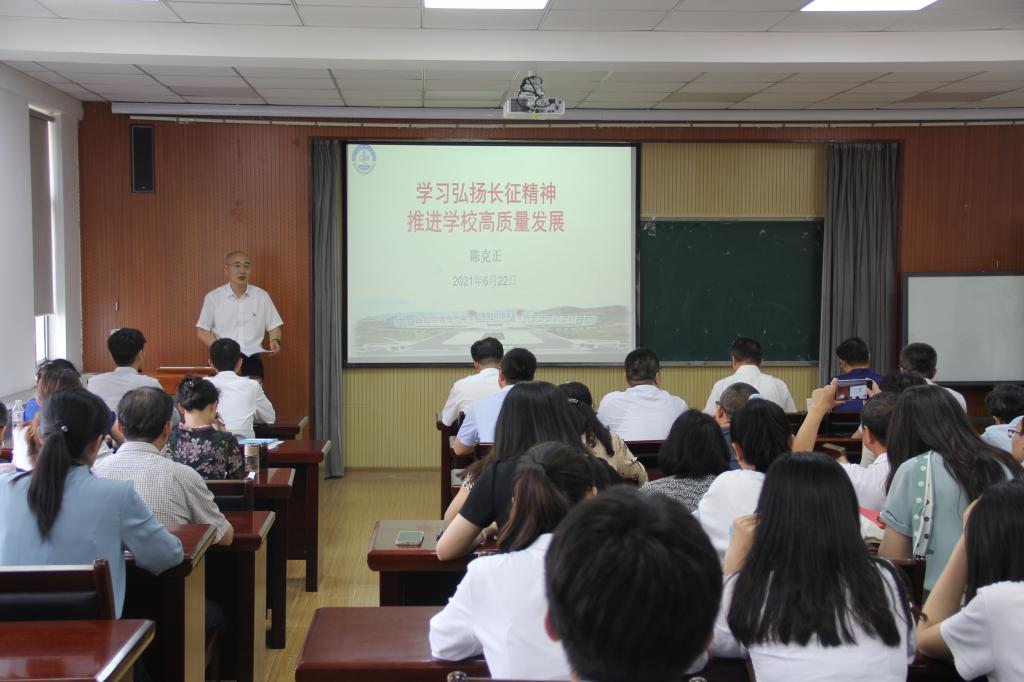 6月22日下午,校长陈克正以“学习弘扬长征精神 推进学校高质量发展”为题,为华人色情