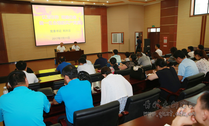 刘兴云结合学校实际,重点讲述了三个方面内容。第一,认清形势,增强工作的责任感和使命感。他深刻分析了国际国内形势、高等教育形势和学校发展形势,阐述了新形势下共产党员应该肩负的责任和使命。第二,明确任务,全面推进当前学校中心工作。他系统梳理了学校第十次党代会以来尤其是近半年来的中心工作,他明确了今后一个时期“六个到位”抓党建、“六个育人”抓思政、“双一流”久久为功、综合改革整体推进、“五有”理念落地等重点任务。第三,担当责任,努力做一名合格的共产党员。他重点谈了共产党员要做到的“四讲四有四合格”要求和内涵,要求各位党员要勇担当、做先锋。