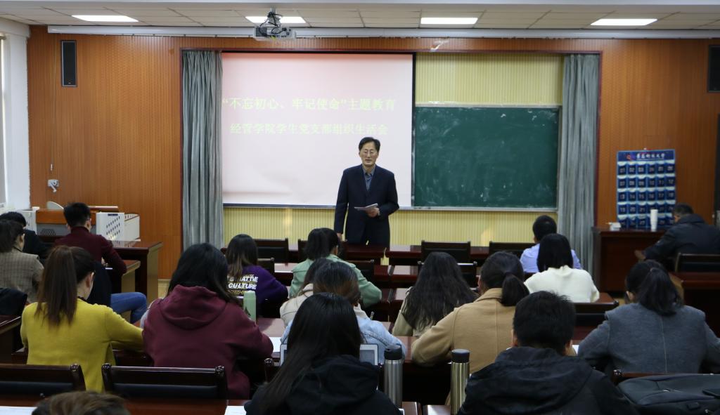 学生党支部于经管楼419室开展了“不忘初心、牢记使命”主题教育组织生活会。党总支书记李德成,党总支副书记、副院长刘跃宁,19级辅导员孙一君及全体学生党员参加了本次会议,会议由孙一君主持。