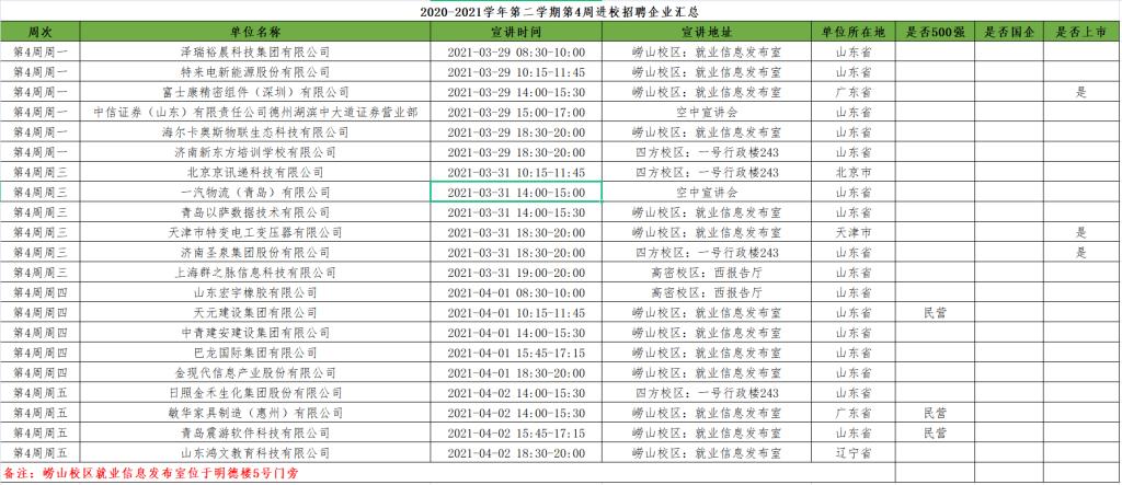 2020-2021学年第2学期第4周,进入我校进行宣讲招聘的企业名单如下,均为涉及华人色情