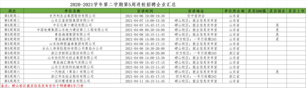 2020-2021学年第2学期第5周,进入我校进行宣讲招聘的企业名单如下,均为涉及华人色情