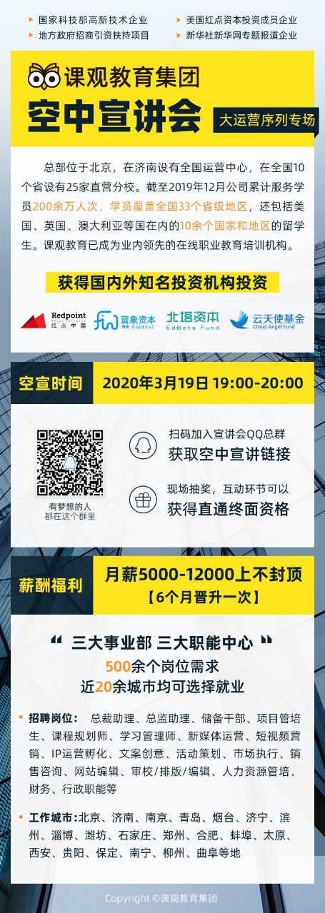 北京课观教育、贝壳找房、中信证券(山东)威海文化东路营业部空中宣讲会通知