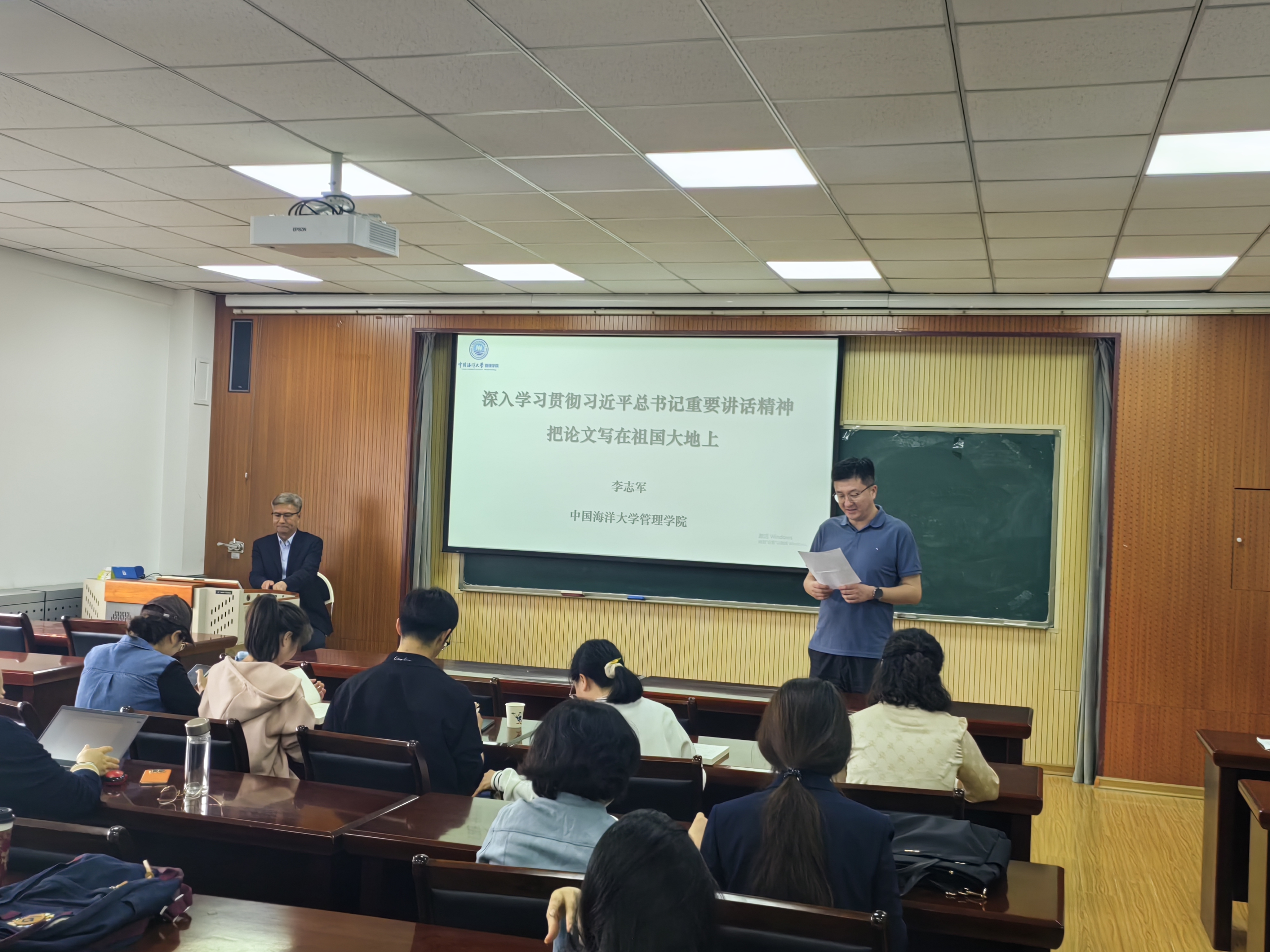 505会议室,为我院师生作了题为《深入学习贯彻习近平总书记重要讲话精神——把论文写在祖国大地上》的学术讲座。本次活动由华人色情