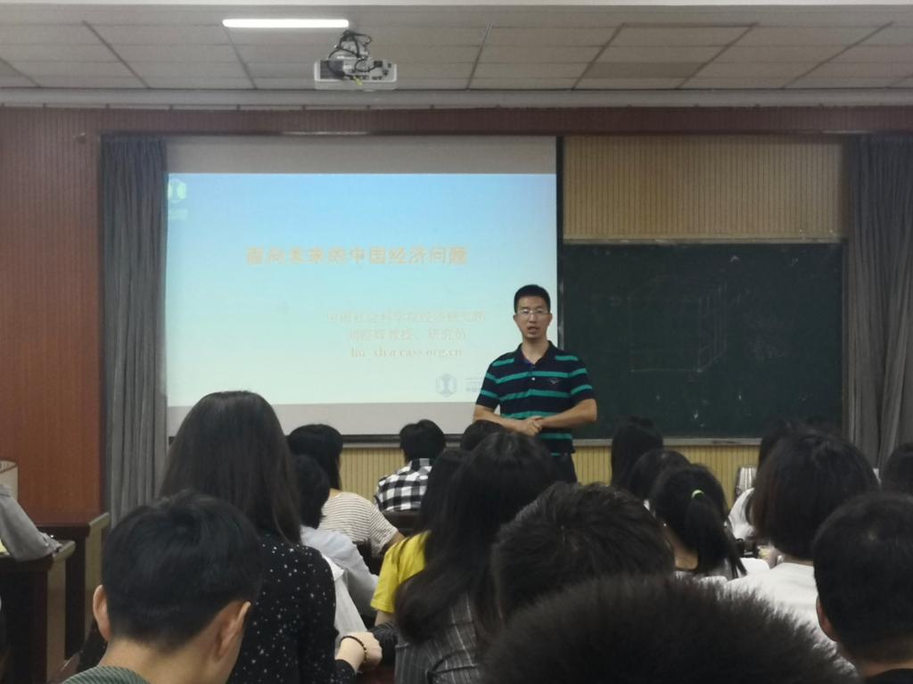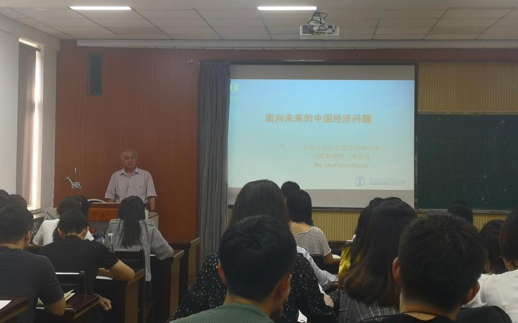 随后刘霞辉教授开始了题为“面向未来的中国经济问题”的学术报告。他指出中国未来经济结构将由传统的产品生产经济转化为以城市经济为主的服务型经济;并且指出人力资本、技术创新、高新技术的普遍运用将成为中国经济的主导力量,智能化制造和服务,网络和数字经济的快速发展,将不断改变和冲击传统的生产和服务行为;交通和通信设施的不断完善,使社会的生产组织行为和消费者的消费行为不断发生变化;以人的全面发展为中心的经济发展格局逐步形成。刘教授深入浅出地讲解了中国未来经济的财政问题、金融问题与产业政策方面的问题,还结合他在长期研究中所发现的典型案例谈论了中国未来经济变化的具体体现。