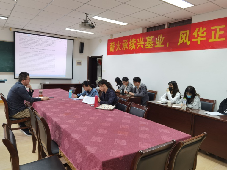 研究生论坛在经管楼415办公室顺利举办,论坛由吕承超副院长主持,学生邵长花进行汇报,索琪、陈明两位专家进行点评。本次论坛的汇报主题为:Financial Development Environment Regulation and Green Technology Innovation。