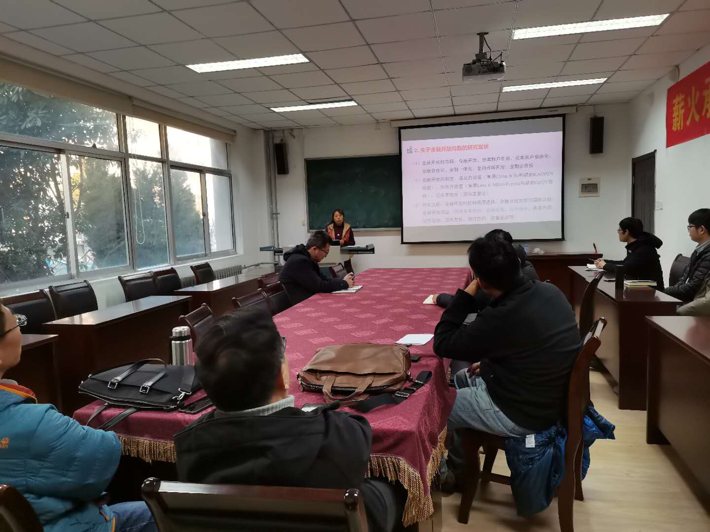 会议中,杨继梅老师介绍了关于金融问题的研究现状,分享了具体研究主题的确定,并介绍了几篇论文成果,最后与老师同学们分享了一些经验。
