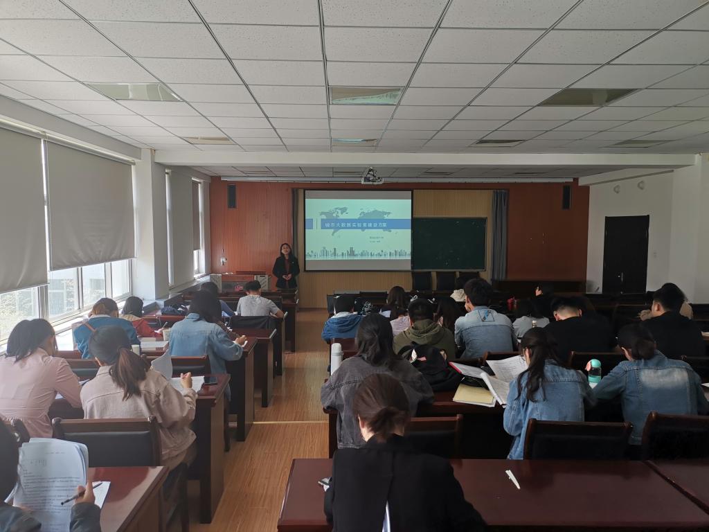 接下来,邱立新教授向师生们分享了题为"城市大数据实验室建设方案”的报告,该报告包括以下五个部分:大数据的基本概念及特征、大数据实验室建设的目的和意义,大数据应用领域及大数据平台应用现状、城市大数据实验室建设思路及平台构架、城市大数据实验室运营模式构想及前景展望。邱教授首先介绍了“大数据”的基本概念,即大数据是结构复杂的数据集,包括具备挖掘价值的大规模数据集,同时指出它具有数据规模大、种类多、处理速度快等特征。她强调,当前以“大数据”为主导的信息化浪潮席卷全球,因此建设大数据实验室的方案设想具有重要的现实意义,这为我们更好地服务我国社会和改善人民生活提供了条件。