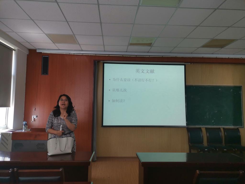 赵瑞美教授首先对在座师生的研究现状进行初步了解,进而引出了此次分享的主题:“有关英文文献的阅读问题”。赵教授分别从阅读英文的必要性、英文文献查询以及如何阅读英文文献这三个方面展开了此次报告的主题内容。她提到,阅读英文文献是非常有必要的,顶尖的英文文献能够影响论文的选题,使我们系统了解研究的学术前沿的同时,为我们安排论文结构以及撰写论文各部分提供有效参考。赵教授接下来向师生们分享了一些查阅英文文献的数据库以及期间需要注意的问题,她强调:阅读文献之前要对文献进行有效筛选,然后在按文献框架进行阅读时,还要做出一定的思考和自我反思。赵教授的分享为我们在高效查询英文文献、阅读英文文献以及进行文献总结等方面提供了好的方法和启示。