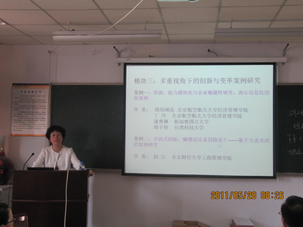 会上MBA授课教师姜真教授详细介绍了案例研究的基本类型与要求,并对MBA案例型毕业论文的写作进行了指导,结合MBA毕业论文写作介绍了各种案例研究方法;曲天明副教授与学员们分享了自己在开发案例中的感受,结合其入选中国案例共享中心案例库的原创性案例《“老榆树”商标权之争》的开发过程,向学员们介绍了如何写好案例。