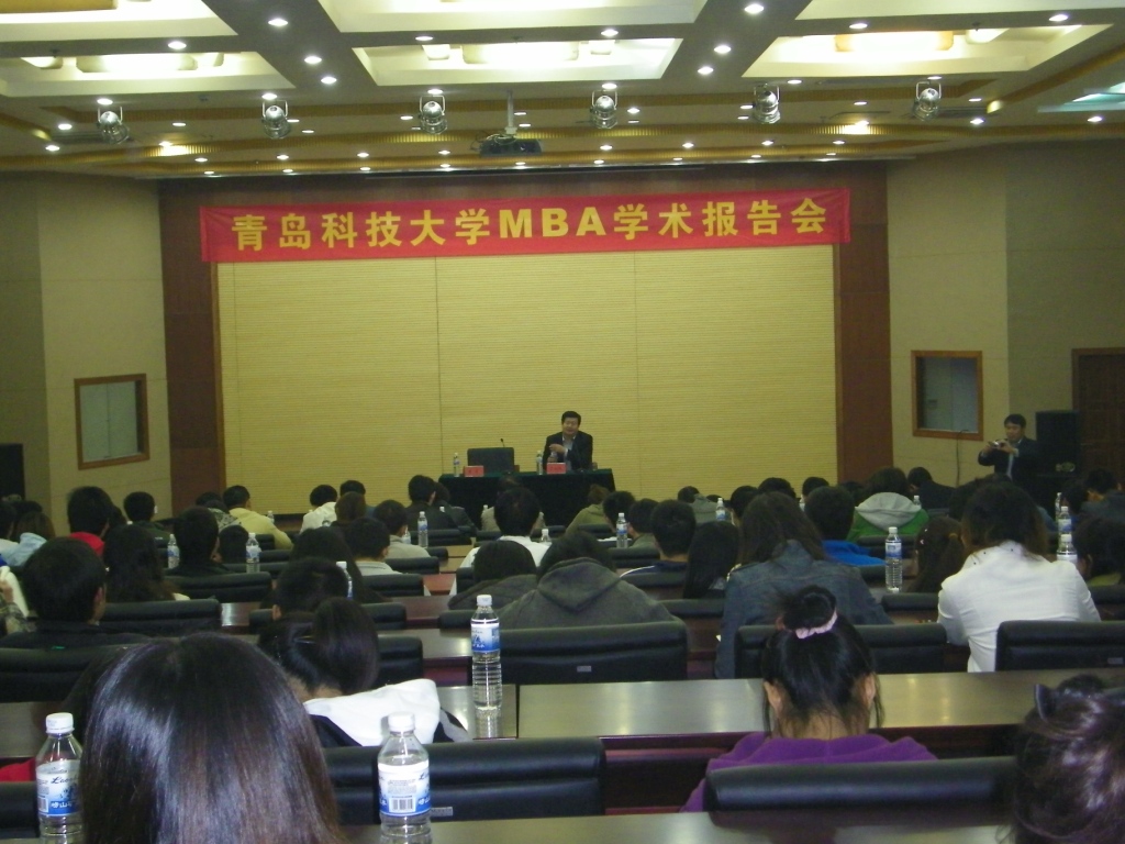 崂山校区第一报告厅,MBA教育中心邀请青岛市政府国有资产监督管理委员会于大江主任,为MBA学员、研究生及本科生做了以“宏观经济形势和工商管理的目标和任务”为题的专题报告。