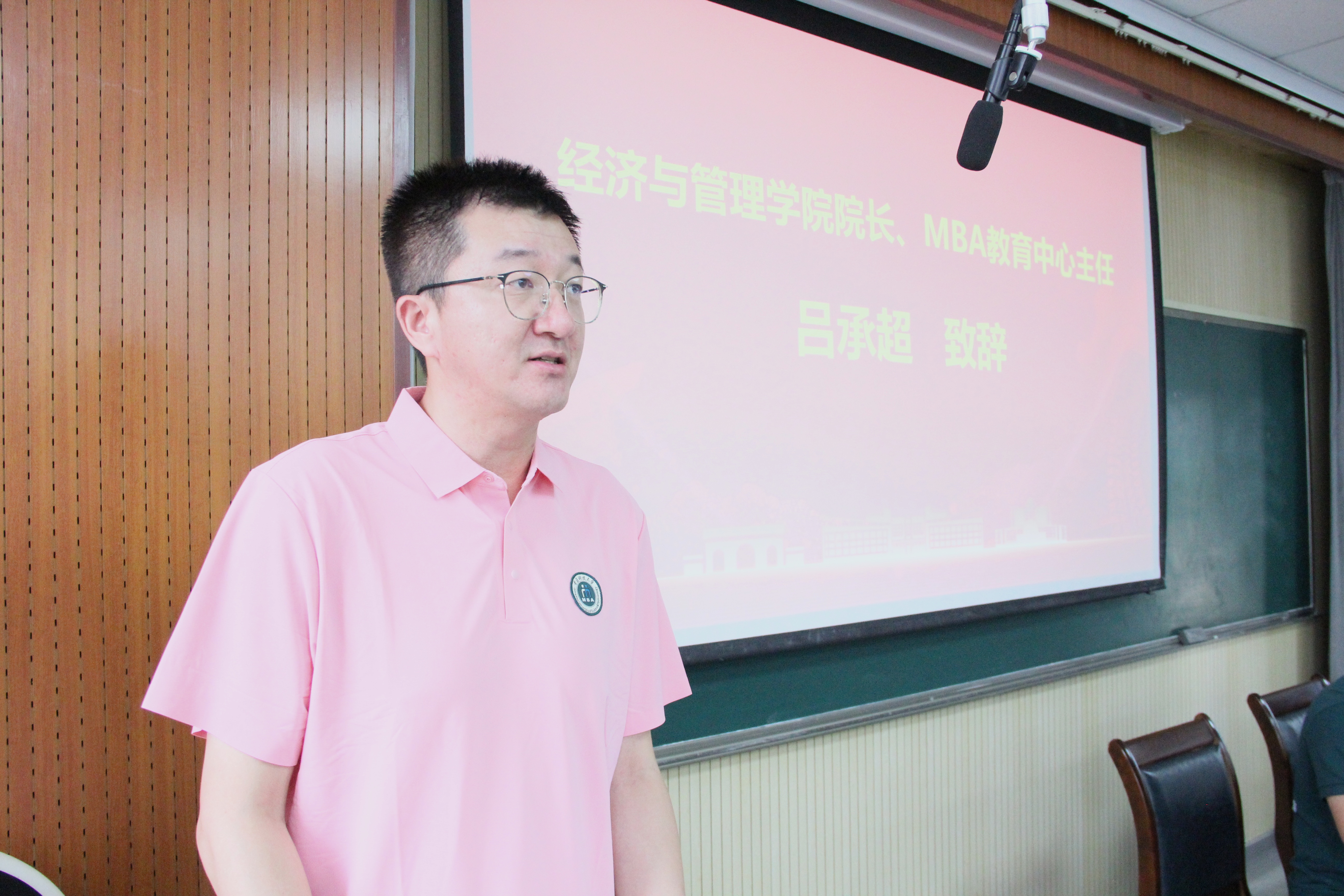 的光辉历史、科研成果和学科建设情况以及学校MBA项目的特色与亮点,并对学院校外导师和社会各界的支持表示了感谢。吕院长强调:作为MBA学生,要学会批判性思维,敢于质疑,勇于探索,在知识的海洋中博采众长,形成自己独立的管理哲学和决策框架。他表示:我们学校的特色是“工管融合”,希望大家能主动打破学科壁垒,利用学校强大的理工科资源,理解技术驱动的商业变革逻辑,思考如何将新材料、新技术、新工艺转化为市场竞争优势和创新商业模式。