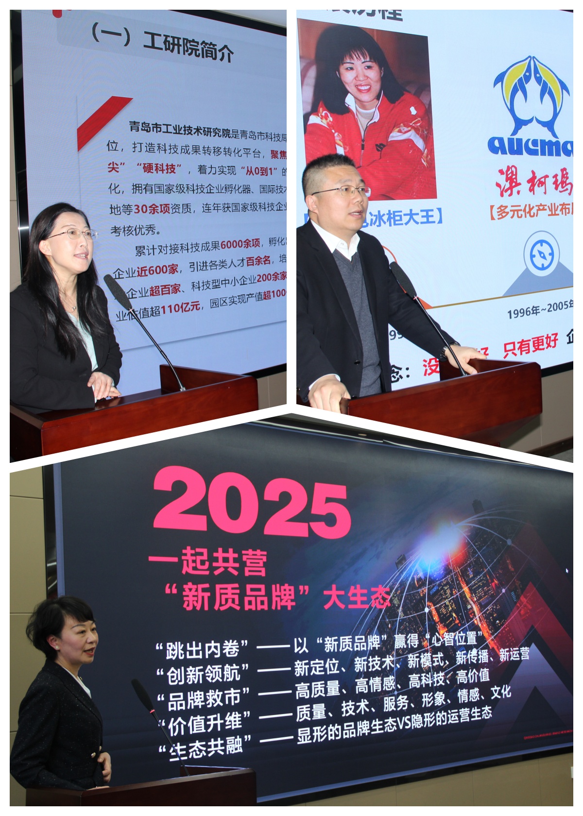 在企业家对话环节,青岛市工业技术研究院院长滕云枫从研究院的服务体系、海洋科技大市场和孵化园区等方面,为大家带来了关于工业技术创新的深刻见解。青岛澳柯玛控股集团有限公司副总经理李建成从澳柯玛的发展历程、发展布局和发展战略等方面,为大家分享了企业发展战略与市场洞察。青岛创想力品牌研究院院长盖彦以“超越内卷、品牌创新”为主题,与大家共同探讨了如何进行品牌创新和持续提高市场竞争力。