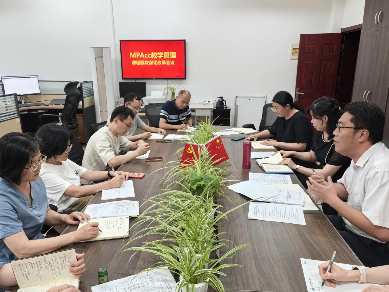 MPAcc中心于2024年7月16日下午在经管304办公室举办了备课会。本次会议由中心主任孙兰兰老师主持,中心全体任课教师参加了此次会议。会议中,各位老师围绕实践教学、模块化教学、课程设置等多个方面进行了深入交流和讨论。