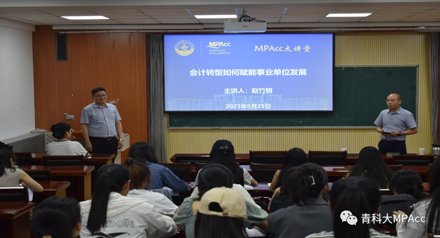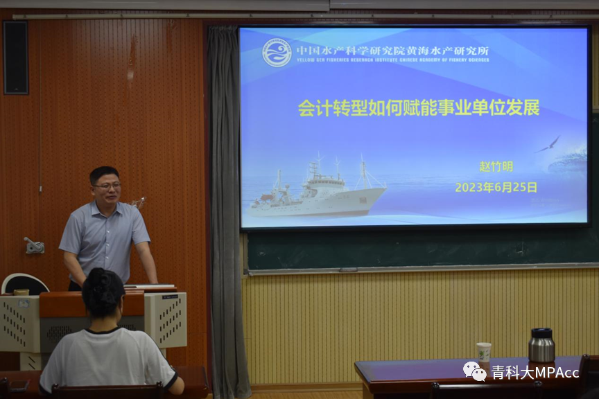 邀请了MPAcc校外导师、中国水产科学研究院黄海水产研究所财务处副处长赵竹明博士,在经管楼学术报告厅作了题为《会计转型如何赋能事业单位的发展》的讲座。